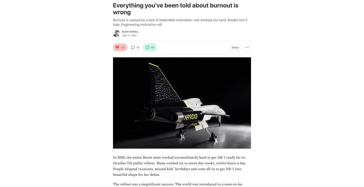 [Originally shared by Israel B] Everything you’ve been told about burnout is wrong - Blake Scholl